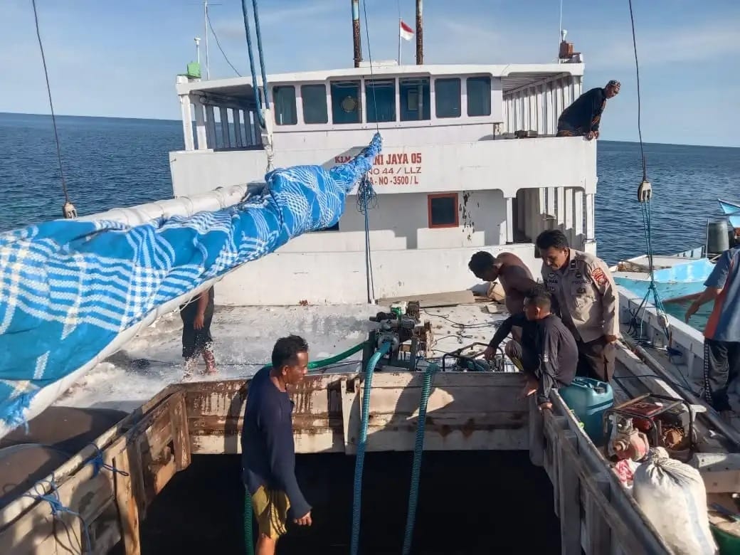 Kapal Kandas, Bhabinkamtibmas Desa Rajuni Pimpin Warga Lakukan Evakuasi