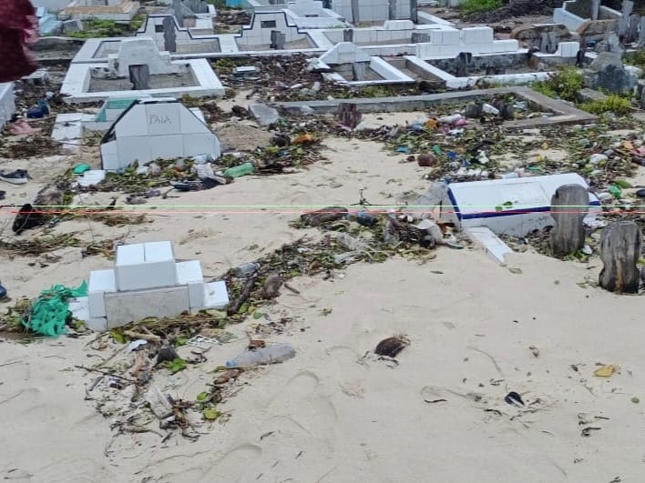 Hal ini disebabkan gelombang tinggi yang terjadi dua pekan terakhir ini, sehingga menyebabkan puluhan kuburan tertimbun pasir laut dan ratusan lainnya terancam hilang akibat abrasi pantai yang terjadi karena gelombang tinggi tersebut.